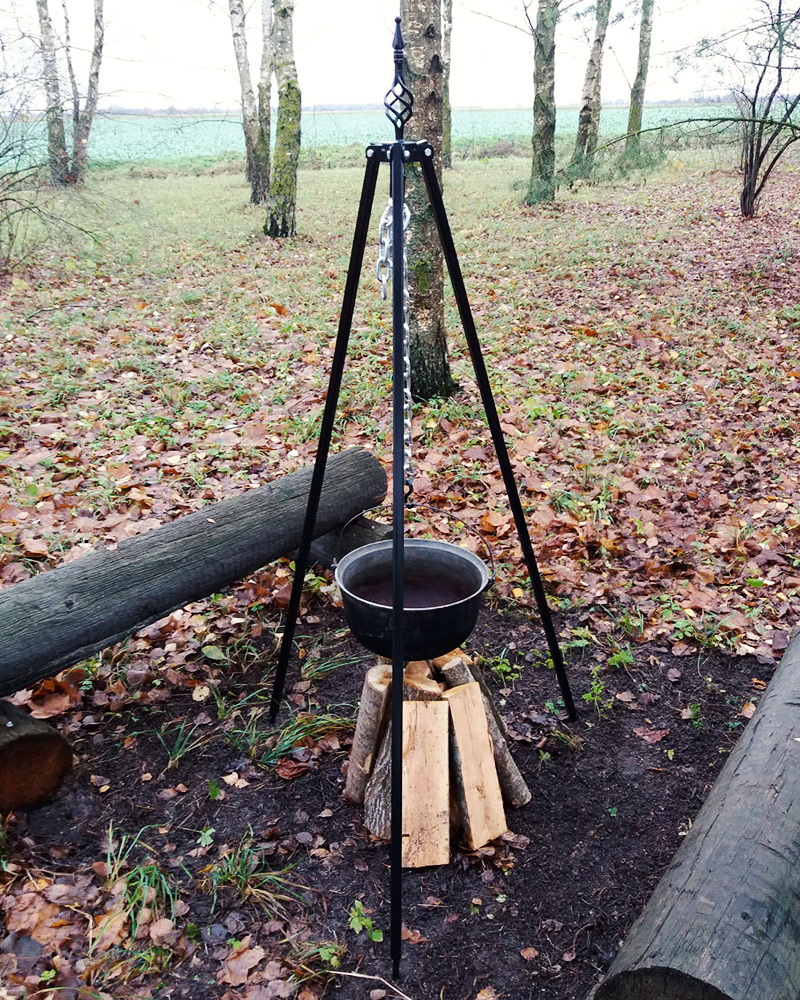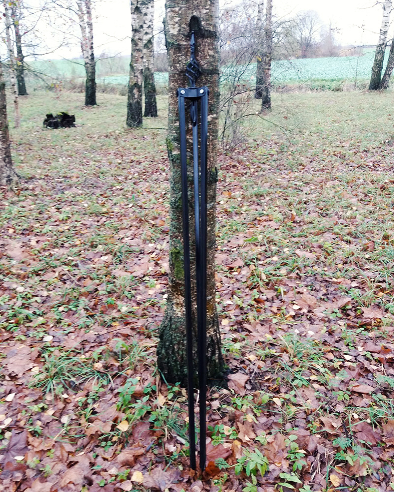 Saliekams trīs kāju statīvs no izturīga metāla profila. Krāsots ar termoizturīgu krāsu. Augstums 180 cm.